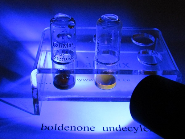 It is simple pass or fail test. Any discoloration under day light will mean that the sample contains other chemicals. Vial A after a while it will develop yellow fluorescence similar to vial B, the initial fluorescence is blue/violet. The fluorescence will last for at least 48 before starting to diminish, while many other steroids will lose fluorescence within hours. For example primobolan will loose fluorescence within 24 hours. This might help to distinguish them.