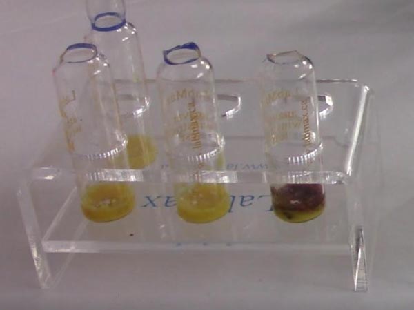 Picture taken at 0 min, on the right it is dianabol, red right away. While samples with anavar and winstrol have no change yet.